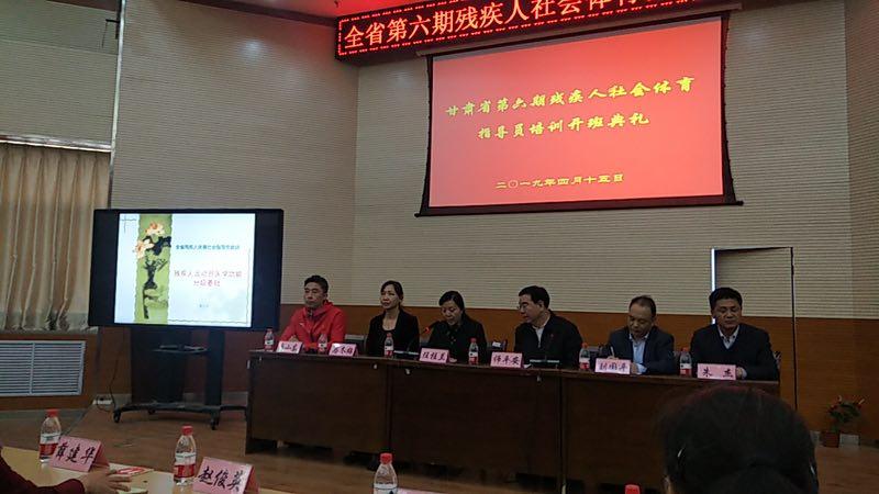 在william威廉中文官网的大力支持及william威廉中文官网的密切配合下,省残疾人文艺体育中心、省社会体育管理中心和省残疾人体育运动与康复研究中心,联合举办的“甘肃省第六期残疾人社会体育指导员培训班”于2019年4月15日举行了隆重的开班典礼。开班典礼上,体育公司党总支书记、省残疾人体育运动与康复研究中心主任马冬梅教授,首先代表培训主办机构致辞,感谢典礼嘉宾的莅临,欢迎全体学员的到来!
