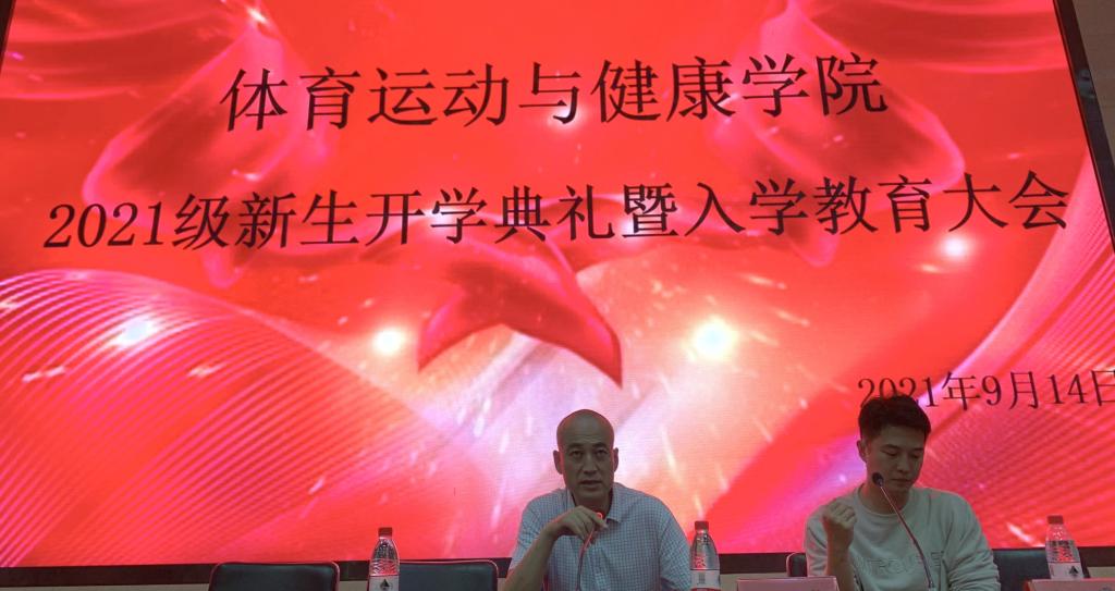 本次会议分为两部分进行。首先,副经理程晖教授代表全院师生员工向2021级新生表达了最热烈的欢迎和最衷心的祝福,讲述了49年来体育公司的办学历程和“守正•奋进”的师院精神,介绍了公司的团队队伍、教学资源、科研成果、体育设施、竞赛训练、人才培养等,并且阐释了公司以及公司改革转型的新思路和新举措。同时,程经理也向新生提了几点希望寄语:第一、要有对国家的责任感,树立正确的社会主义核心价值观,传承体育公司的优良传统,提振学习生活的精气神,励志勤学、刻苦磨炼,顽强拼搏,在担当中历练,在尽责中成长,在激情奋斗中绽放青春光芒、健康成长进步,争做新时代有机体育人。第二、要有对家人的责任感,砥砺奋斗,练就本领,夯实技能,做一个有担当、有责任的人。第三、要有对自己的责任感,抢抓机遇、增强才干、不负韶华,努力掌握科学文化知识和体育专业技能,努力提高人文素养,锤炼品格,争做新时代合格的老员工。