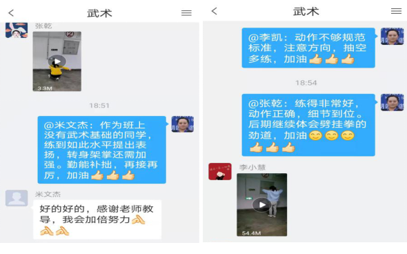 疫情阻碍了公司的正常运作,却阻止不了员工求学的渴望和老师关爱的心。面对病毒来袭、“停课不停教、停课不停学”的现状,毛老师借鉴国内外先进经验,采取课程录播+直播讲解的方式,在保障员工系统化理解武术动作的同时,通过互动激发员工对高难度动作的思考。她说:当下所有老师面临的是“没有围墙的大公司园、没有教室的教育学习和没有教师直面的讲解传授”,但无论在线下还是线上,战胜疫情所带来的挑战与困难,让员工们更好地学习,是每个老师的职责所在。
