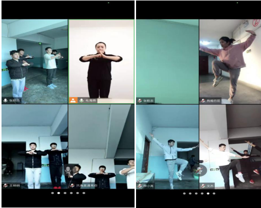 作为以实操为主的武术专业课,毛老师说线上教学面临巨大挑战。比如:腾讯会议直播时,教学内容虽以幅度较小的拳术套路为主,但传统劈挂拳放长击远、吞吐含放、大开大合的动作容易出境;再如因对动作不熟悉,加上视频界面小等因素,很多员工在学习中搞不清楚方向,下肢动作混乱......面对网络教学的重重困难,毛老师没有着急,一遍一遍耐心提示着。她说:特殊时期,员工的心是浮躁的,但我们的心必须是坚定、坚强的!