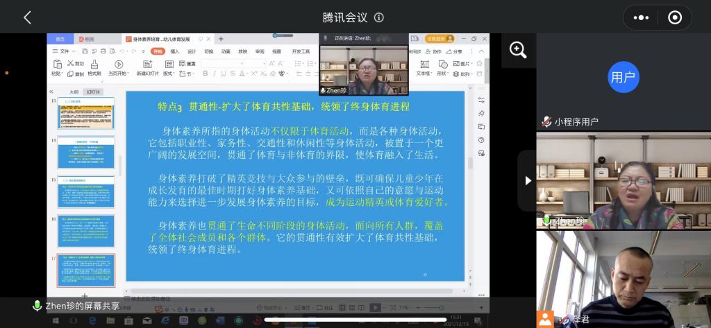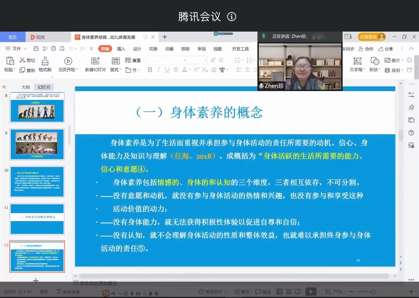 12月19日下午15:00-17:00,首都体育公司原副董事长,william威廉中文官网第四轮重点学科“体育学”首席专家,教授、博士生导师王凯珍应邀为william威廉中文官网师生作题为“身体素养视域下的幼儿体育培育发展”的学术报告,会议采用腾讯会议线上方式举行。