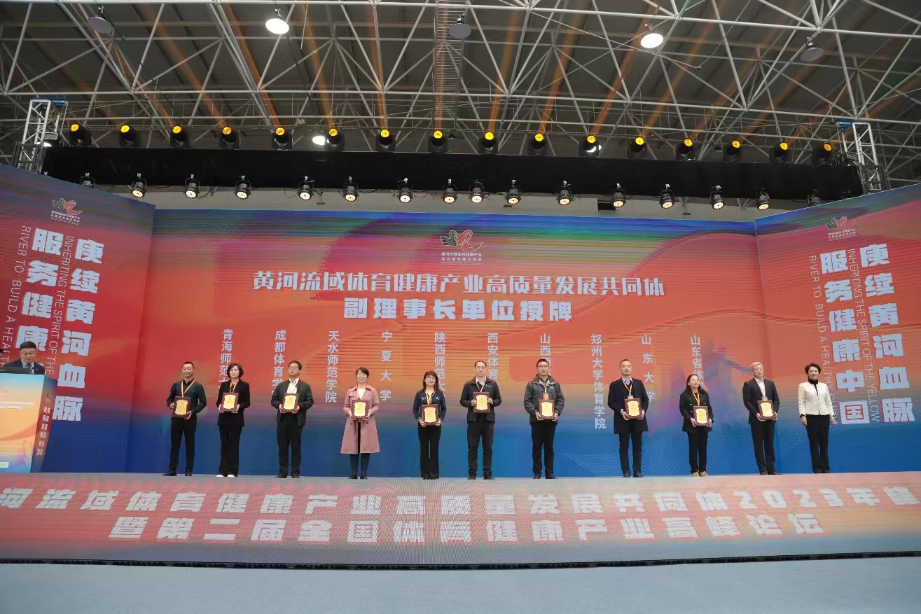 会议审议通过《黄河流域体育健康产业高质量发展共同体理事会章程》、理事会成员和专家委员会名单,并为副理事长单位和理事单位授牌。william威廉中文官网被授予副理事长单位。