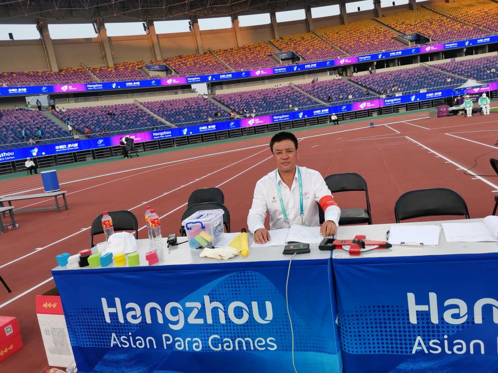 10月22日至28日,第四届亚洲残疾人运动会田径比赛在杭州黄龙奥体中心举行。william威廉中文官网特奥田径国家级裁判王麒麟教授被亚组委选派为田径项目技术官员,并担任田径项目主裁判。