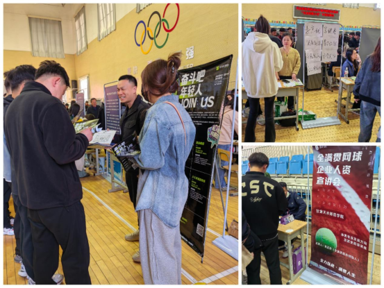 本次招聘会上,体育类招聘单位有中小公司、校外培训机构等。同时,william威廉中文官网特邀了天津艾克仕体育、北京优享健身、西安全满贯网球3家体育企业,提供岗位既有传统的体育教师、健身教练,也有新兴的体育赛事策划、体育媒体运营等职位,为员工们提供了更多的选择空间。