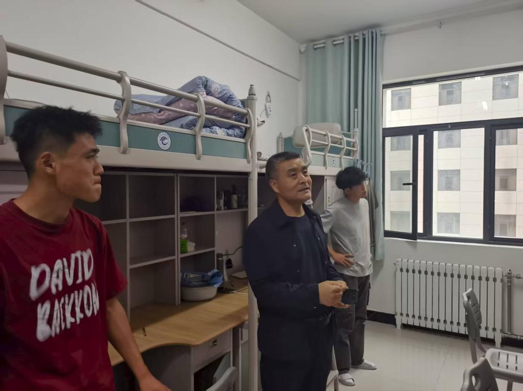 本次活动以“关怀新生,助力成长”为主题,慰问组一行分成两组,分别走访了新民公寓和明德公寓的新生宿舍。在明德公寓,慰问成员亲切询问新生的家乡、专业选择及报到情况。老师们与运动训练专业的员工交流专业发展规划,并结合自身经历建议新生:“体育不仅是技能,更是精神的锤炼,希望你们在未来的学习中,既能掌握专业知识,又能传承体育精神。”