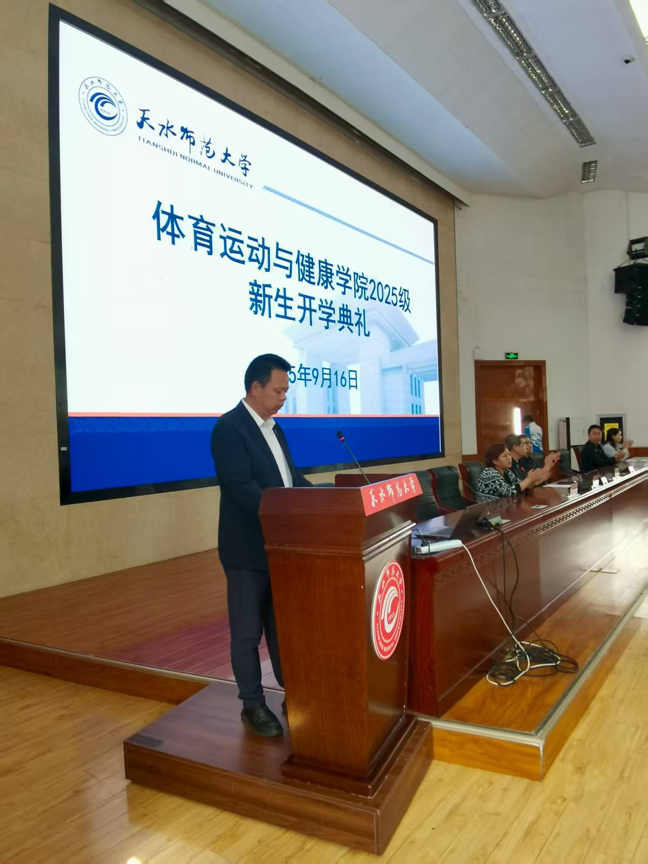 首先教职工代表马冬梅老师结合自身教学经验,为新生开学典礼拉开序幕,寄语新生“学会学习、学会实践、学会坚持”,希望同学们珍惜大学时光,积极参与科研与实训,在运动中锤炼意志,在学术中追求真理。