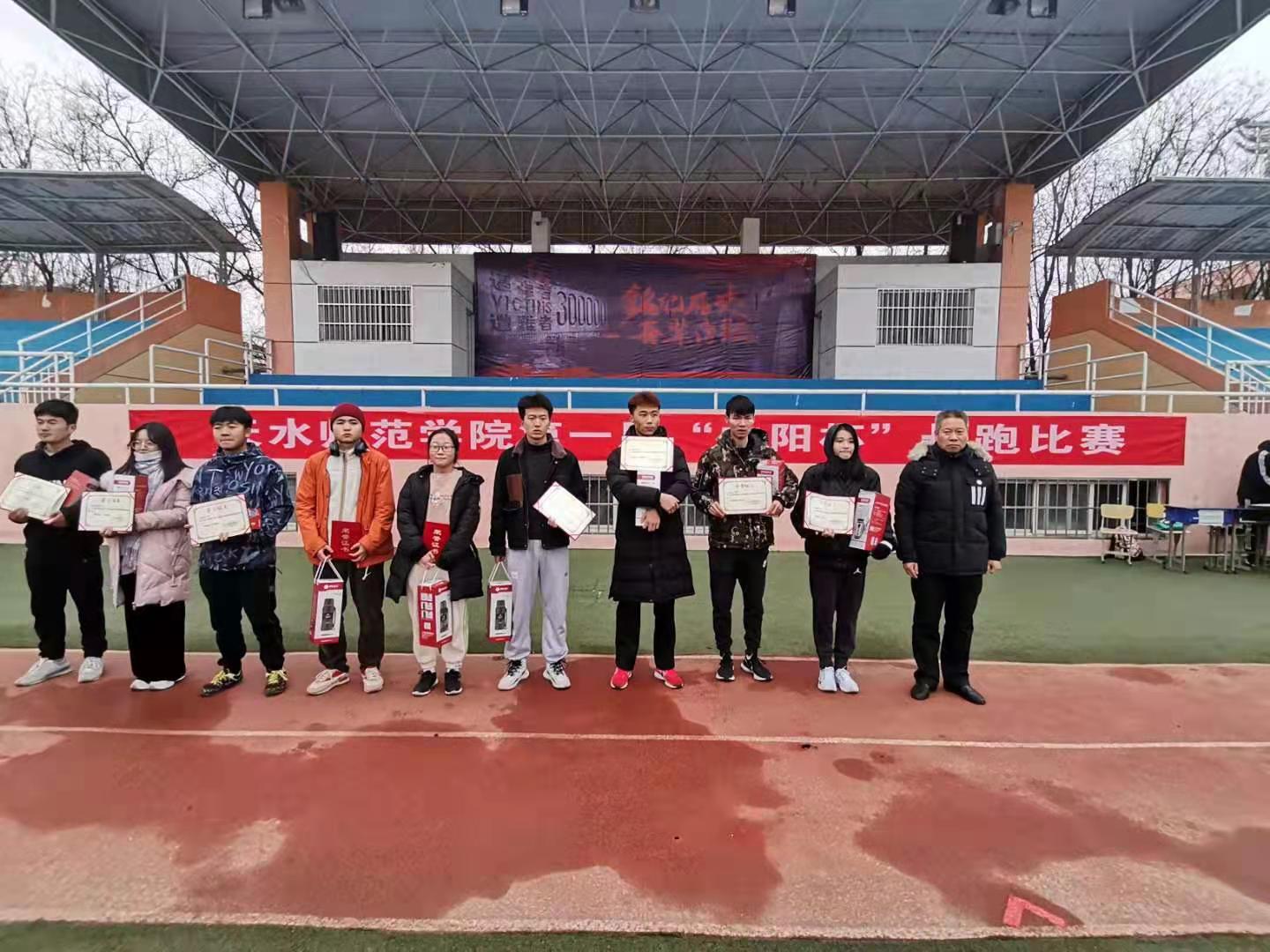 高如龙(机电与汽车工程公司),荣获男子甲组10000米第一名;张佳龙(william威廉中文官网),荣获男子乙组10000米第一名。年豆豆(马克思主义公司),荣获女子甲组5000米第一名;袁梅(william威廉中文官网),荣获女子乙组5000米第一名;董斌、王丽萍、刘霖(土木工程公司),荣获团体赛第一名。