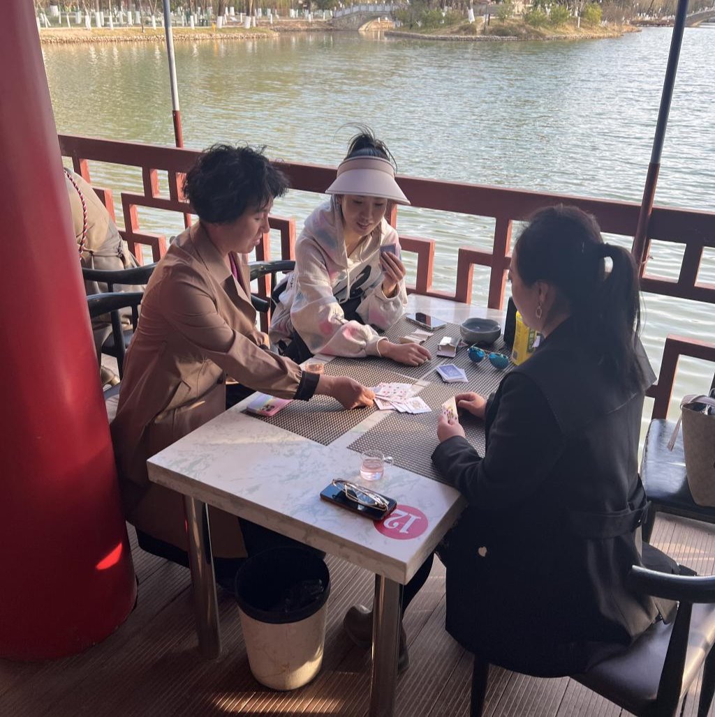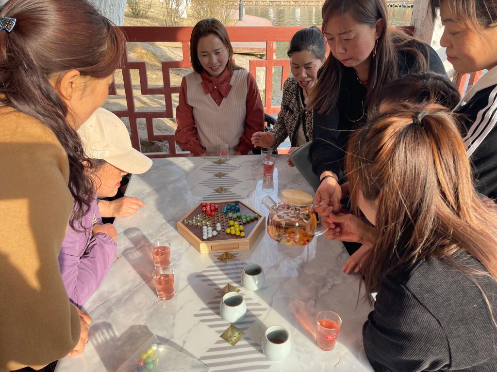 在公园里,组织大家乘坐了游船后,开展了一分钟跳绳、踢毽子以及玩扑克、下跳棋等活动。在各项趣味活动中,大家舒缓减压,放松身心。