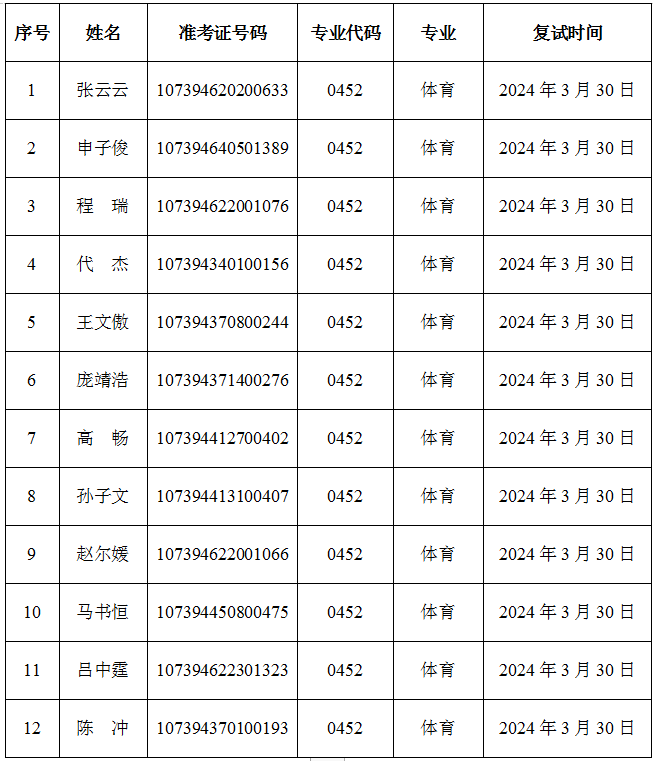 2024年硕士研究生一志愿复试考生公示名单