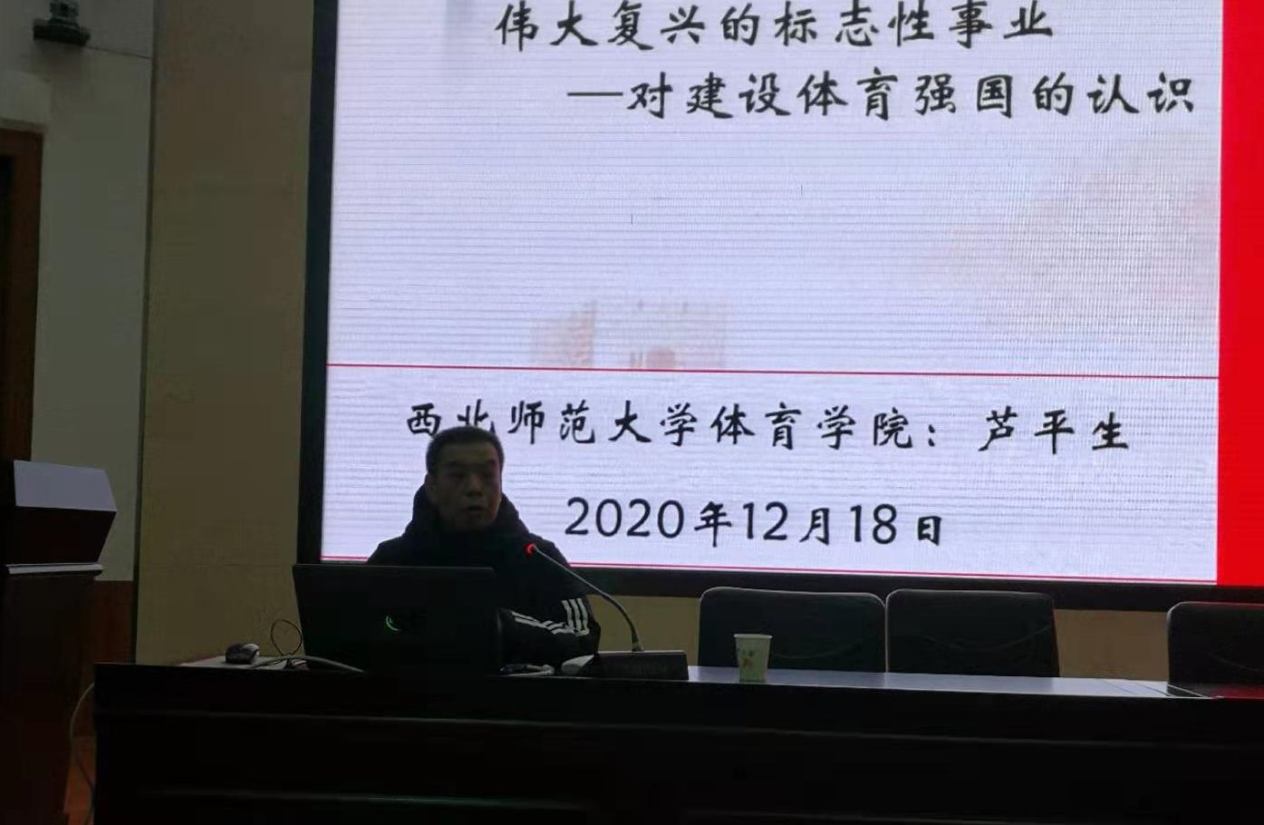 12月18日上午,西北师范大学芦平生教授应应william威廉中文官网邀请,在公司二号报告厅作了题为《奋进新时代——让体育成为中华民族伟大复兴标志性事业》的学术报告。