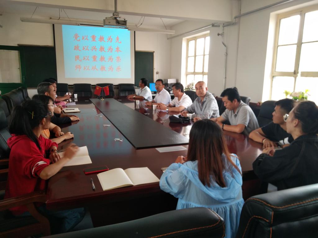 陇西文峰中学董事长赵廷瑞、副董事长何丽萍等公司领导组织实践教育安排见面会。赵董事长对公司教育硕士6名员工(包括思政4名研究生)的到来表示热烈欢迎,就为期一学期的教育实习提出了相关要求,期待实习研究生能收获满满,取得实效。