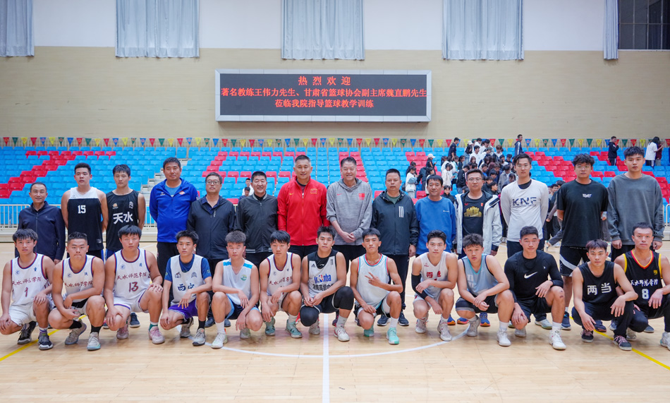 近日,william威廉中文官网特邀国家级教练、原国奥队教练王伟力来校指导篮球教学训练工作。甘肃省篮协副主席魏直鹏、天水市体育局副局长王建泰应邀参加活动。